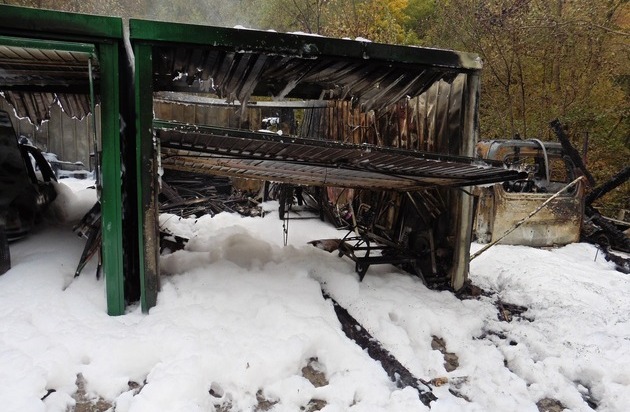 Walkenried-wol-In den frühen Morgenstunden des 22.10.2015 kam es in Zorge, Im Elsbach, zu einem Schadenfeuer. Im Bereich von mehreren dort aufgestellten Garagen und Nebengebäuden neben einem Mehrfamilienhaus brach gegen 02.15 Uhr ein Feuer aus; der Besitzer dieser Garagen versuchte zunächst vergeblich, dieses mit eigenen Mitteln zu löschen. Da dieses nicht gelang, alarmierte er die Feuerwehr, die mit Kräften aus Zorge, Wieda und Walkenried mit insgesamt 50 Wehrleuten den Brand bekämpfte. Die Ausdehnung des Brandes war allerdings bis zum Eintreffen der Löschkräfte bereits so weit fortgeschritten, dass 3 Garagen und ein angebauter Schuppen komplett ausbrannten. Darin befindliche 2 Pkw's und ein Anhänger verbrannten völlig, weiterer Schaden entstand durch den Verlust am Werkzeugen und Maschinen, die dort gelagert waren. Der Schaden wird auf ca. 30 000 EUR geschätzt. Zur Brandursache können noch keine abschließenden Angaben gemacht werden, die Polizei hat entsprechende Ermittlungen aufgenommen.