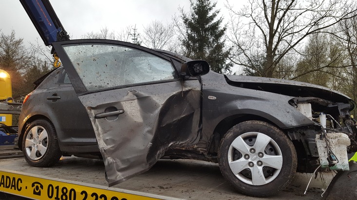B243 - (NEI) Am Sonntagmorgen befuhr eine 19jährige Herzbergerin mit ihrem PKW die B243 in Richtung Herzberg. In Höhe von km 26,1 (Bereich Aschenhütte) geriet die Herzbergerin ,aus bisher nicht abschliessend geklärten Gründen, nach rechts von der Fahrbahn. Hier fuhr sie auf eine abgesenkte Schutzplanke auf, worauf sich ihr PKW überschlug. Das Fahrzeug hob für mehrere Meter vom Boden ab und kam letztendlich nach ca. 100 Metern, nach dem Aufprall an einem Baum zum stehen. Die alleine im PKW befindliche Fahrzeugführerin blieb nahezu unverletzt. Der PKW war nicht mehr fahrbereit.