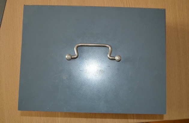 Einbeck -vo. Einbeck, Innenstadtbereich. Am 03. April 2017 wurde auf einem Schulhof im Stadtbereich eine graue Geldkassette aufgefunden. Da die Kassette gewaltsam geöffnet wurde, kann eine damit verbundene Straftat nicht ausgeschlossen werden. Zur Zeit liegt aber bei der Polizei Einbeck keine Diebstahls- oder Einbruchsanzeige vor, wo solch eine Kassette entwedet worden ist. Die Geldkassette hat die Maße 35x25,5x13,5 cm, ist außen grau und innen rot. Auf der Rückseite ist eingestanzt das Wort "Bund" und im Inneren ist ein Aufkleber mit der Aufschrift "G.Müller-Herborn 1978" angebracht, wobei es sich dabei wohl um den Hersteller der Geldkassette handelt. Wer Angaben zu der Geldlassette machen kann oder diese sogar vermisst, kann sich unter der Telefonummer 05564-94978-115 bei der Polizei Einbeck melden.