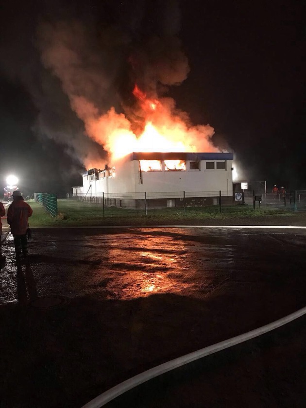 HATTORF (US) Am Dienstag, den 07.11.17 um 02:37 Uhr wurde der Polizei ein Brand in Hattorf, in der Straße "Am Sportplatz" gemeldet. Beim Eintreffen der Polizeikräfte stand das Sporthaus der Samtgemeinde Hattorf in Vollbrand. Das gesamte Objekt wurden durch den Brand vollends zerstört. Vor Ort waren ca. 80 Kräfte der Feuerwehren aus den umliegenden Gemeinden im Einsatz. Der geschätzte Gesamtschaden beläuft sich auf ca. 200.000,-- Euro. Mittlerweile haben Brandursachenermittler der Polizei die Arbeit aufgenommen. Zeugen, die Hinweise zur möglichen Brandentstehung geben können, werden gebeten sich beim Polizeikommissariat in Osterode unter der Tel.-Nr. 05522/508-0 zu melden.