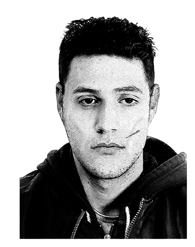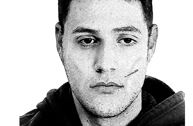Von einem der Tatverdächtigen liegt eine recht markante Beschreibung vor. Dieser ist auf dem Phantombild abgebildet: