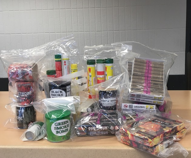 Gegen 22:00 Uhr erstatteten zwei Passanten in Ricklingen anzeige. Sie waren aus einer Wohnung an der Straße Auf der Papenburg mit Böllern beworfen worden und haben offenbar Knalltraumata erlitten. Eine anschließende durch die Staatsanwaltschaft Hannover angeordnete Durchsuchung der Wohnung des 24-jährigen Tatverdächtigen ließ die Einsatzkräfte staunen. In der Wohnung beschlagnahmten Sie 261 verbotene, pyrotechnische Gegenstände - darunter 246 sogenannte "Polenböller" und vier Nebeltöpfe (Foto siehe im Anhang).