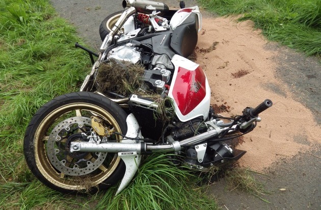 Wurster Nordseeküste. Am Sonntagnachmittag (07.08.2016) gegen 14:30 Uhr befuhr ein 26-jähriger Motorradfahrer aus dem Landkreis Osterholz die K 69 von Dorum-Neufeld in Richtung Dorum. In einer langgezogenen Rechtskurve überholte er ersten Ermittlungen zufolge andere Fahrzeuge mit überhöhter Geschwindigkeit. Dabei übersah er offenkundig einen entgegenkommenden Pkw. Der 51-jährige Autofahrer aus der Gemeinde Wurster Nordseeküste konnte durch ein Ausweichmanöver in den rechten Seitenraum und durch eine Vollbremsung einen Frontalzusammenstoß mit dem Motorrad vermeiden. Trotzdem kollidierte das Motorrad mit der Fahrzeugseite. Der Motorradfahrer stürzte und wurde schwer verletzt in eine Klinik gebracht. Sein Motorrad kam nach ca. 50 Metern auf dem Rad-/Fußweg zum Liegen. Der Pkw drehte sich durch den Aufprall und kam quer zur Fahrtrichtung auf der Fahrbahn zum Stillstand. Die 42-jährige Beifahrerin im Pkw wurde leicht verletzt und vorsorglich durch den Rettungsdienst einem Krankenhaus zugeführt. Der 51-jährige Fahrer und das 5-jährige mitfahrende Kind blieben nach ersten Ermittlungen unverletzt. Der entstandene Sachschaden wird seitens der Polizei auf ca. 50.000 Euro geschätzt. Die Feuerwehr aus Dorum streute ausgeflossene Betriebsstoffe ab. Für die Rettungs- und Bergungsmaßnahmen wurde die K 69 in beiden Richtungen für ca. 2 Stunden voll gesperrt.