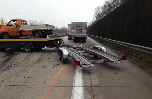 Am Freitag gegen 13.15 Uhr ereignete sich auf der Richtungsfahrbahn Cuxhaven, kurz nach der Anschlussstelle Bremerhaven-Geestemünde, ein schwerer Verkehrsunfall. Aufgrund der Baustelle auf der Moorbrücke hatte sich im Berufsverkehr ein Rückstau gebildet. Ein 22-jähriger Lkw-Fahrer aus Osterholz-Scharmbeck bemerkte dieses zu spät und fuhr mit seinem Lastzug, vermutlich ungebremst, auf einen Lkw auf, welcher bereits stand oder mit Schrittgeschwindigkeit fuhr. Dieser Lkw wurde wiederum auf den davor befindlichen Sattelzug aufgeschoben. Der Unfallverursacher wurde in seinem Lkw eingeklemmt und musste von der Berufsfeuerwehr Bremerhaven aus dem Führerhaus befreit werden. Er wurde mit schweren Verletzungen in ein Krankenhaus eingeliefert. Die beiden anderen Beteiligten, ein 50-jähriger aus Osterholz-Scharmbeck und ein 49-jähriger aus Thüringen wurden leicht verletzt. Der beteiligte Lastzug und der Lkw mussten abgeschleppt werden. Der Sattelzug blieb fahrbereit. Zusätzlich wurde die Mittelschutzplanke beschädigt. Insgesamt entstand ein Sachschaden von ca. 70 000,- Euro. Zunächst mussten beide Richtungs-fahrbahnen der Autobahn gesperrt werden, da der Einsatz der Feuerwehr von der Gegenseite aus erfolgen musste. Die Sperrung der Richtungsfahrbahn Bremen konnte bereits gegen 14.30 Uhr wieder aufgehoben werden. Die Sperrung in Richtung Cuxhaven dauerte bis ca. 17.30 Uhr an. Es bildete sich ein erheblicher Stau. Im Stadtgebiet Bremerhaven kam es ebenfalls zu starken Verkehrsbeeinträchtigungen.