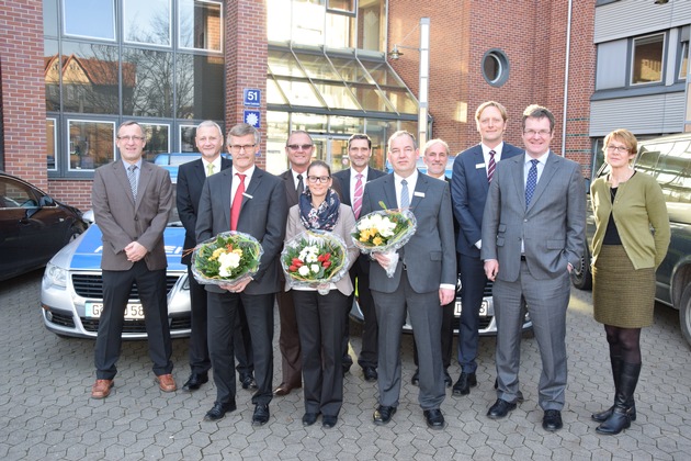 Stellvertretend für die vielen aufmerksamen Mitarbeiterinnen und Mitarbeiter von Banken dankte der Polizeipräsident Frau Reitemeyer, Auszubildende der Volksbank Göttingen, Herrn Bode, Kassierer der Sparkasse Göttingen und Herrn Fahrenholz, Kundenberater der Commerzbank, für ihr hervorragendes Verhalten. Begleitet wurden diese durch ihre Vorstandsmitglieder bzw. Filialleiter Herrn Bludau, Herrn Hald und Herrn Schramm. Im Austausch wurde sehr deutlich, dass Bankmitarbeiterinnen und -mitarbeiter immer wieder Schulungen und Informationen über betrügerische Handlungen erhalten und oftmals die einzigen Personen sind, die die Situation hinterfragen und auf die Seniorinnen und Senioren einwirken können.