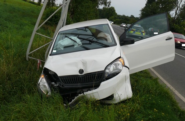 Nachdem ein junger Mann aus Bedburg kurz abgelenkt war, kam er mit seinem Wagen ab und prallte gegen ein Schild. Hierbei verletzte er sich leicht.