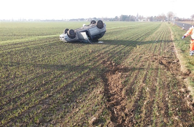 Eine 19 Jahre alte Frau kam mit leichten Verletzungen davon, als sich ihr Wagen überschlug und auf einem Feld liegen blieb.