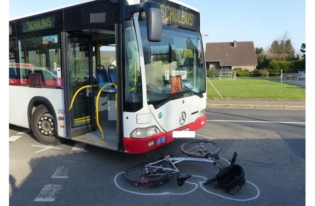 Eine 42-jährige Frau aus Niederzier war zu dieser Zeit mit ihrem Fahrrad auf der Kölner Landstraße, aus Richtung Jülich kommend, unterwegs. Währenddessen befuhr eine 61-Jährige aus Titz die Kölner Landstraße aus Richtung Kreisverkehr kommend. In Höhe der Grünstraße wollte sie nach links abbiegen und übersah dabei, vermutlich aufgrund der tiefstehenden Sonne, die auf dem Radweg entgegenkommende Radfahrerin. Es kam zu Zusammenstoß zwischen Bus und Fahrrad, wodurch die Niederziererin zu Boden stürzte. Zur Versorgung ihrer Verletzungen wurde sie mit einem RTW in ein Kran-kenhaus gebracht. Die Fahrgäste im Bus, vier Kinder, überstanden den Unfall unverletzt. Es entstand leichter Sachschaden in Höhe von circa 800 Euro.