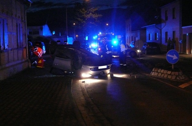 POL-DN: Pkw überschlägt sich an Verkehrsinsel
