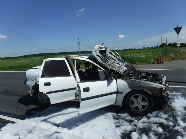 Bei einem Verkehrsunfall auf der Landesstraße 264 in Höhe von Neu-Morschenich sind am Pfingstmontag fünf Autoinsassen verletzt worden. Ein beteiligter Pkw brannte an der Unfallstelle vollständig aus.