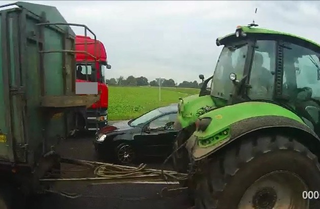 Der Polizei liegen Aufnahmen vor, auf denen die beteiligten Fahrzeuge abgebildet sind. Sie bittet nun sowohl die Fahrerin des Pkw VW sowie den Fahrer des Traktor-Gespanns, sich zu melden. Auch weitere Zeugen und der Fahrer des Lastwagens werden gebeten, Kontakt zur Polizei aufzunehmen. Der zuständige Ermittler des Verkehrskommissariats ist zur Bürodienstzeit unter der Telefonnummer 02421 949-5233 zu erreichen. Außerhalb dieser Zeit nimmt die Leitstelle unter der Nummer 02421 949-6425 Hinweise entgegen.