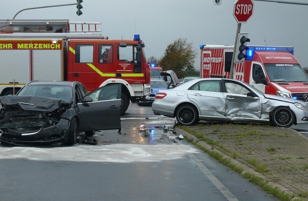 POL-DN: Vier Verletzte und hoher Sachschaden nach Verkehrsunfall
