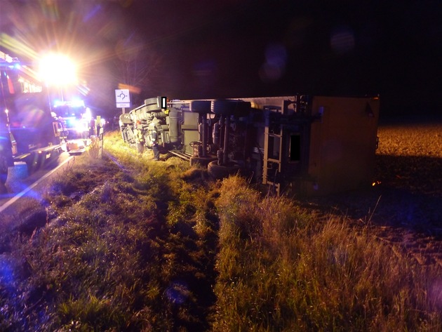 35000 Euro Sachschaden und eine lange andauernde Straßensperrung verursachte am Montagabend ein 46 Jahre alter Lkw-Fahrer. Er war mit seinem Gespann umgekippt.