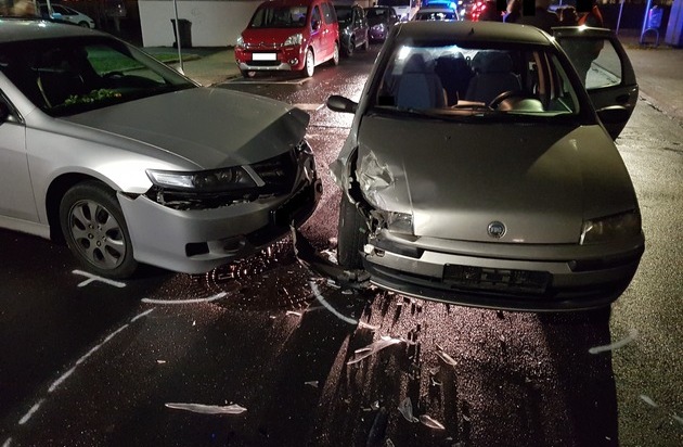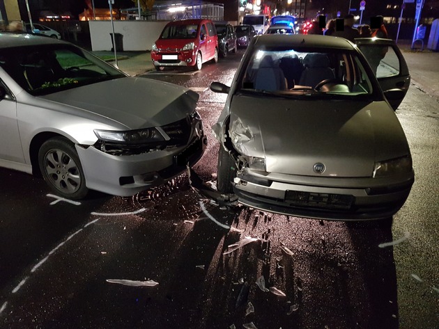 Zur Unfallzeit gegen 21:00 Uhr befuhr eine 18-jährige Frau aus Düren mit ihrem Wagen die Victor-Gollancz-Straße aus Richtung Kaiserplatz kommend in Richtung Philippstraße. Zeitgleich befand sich eine gleichaltrige Dürenerin mit ihrem Auto auf der Violengasse und fuhr von der Wilhelmstraße kommend in Richtung des dortigen Parkplatzes. Erstere missachtete offensichtlich die dort geltende Vorfahrtregelung "rechts vor links", so dass es zum Unfall zwischen den beiden Fahranfängerinnen kam. Dabei verletzten sich sowohl die beiden Fahrerinnen leicht, als auch eine 21 Jahre alte Beifahrerin im Fahrzeug der Dame, die die Violengasse befuhr. Die Autos selber waren nach dem Unfall nicht mehr fahrbereit. Sie mussten von der Unfallstelle abtransportiert werden. Der Sachschaden an ihnen wird auf insgesamt etwa 12000 Euro geschätzt.