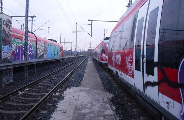 Am frühen Sonntagmorgen, 01.04.2018, 07.10 Uhr, beobachtete ein Zeuge einen Graffiti Sprayer, wie dieser im Bahnhof Düren einen dort abgestellten S-Bahn-Zug mit Farbe besprühte. Er informierte umgehend die Polizei. Den Beamten der Polizeiwache Düren gelang es einen 31-jährigen Kölner, der sich noch durch Flucht vor den Beamten zu entziehen versuchte, durch eine sofortige Fahndung und Verfolgung zu Fuß in einer Nebenstraße des Bahnhofgeländes zu stellen. Gegenüber den Beamten verhielt sich der Kölner respektlos und beleidigte sie in übelster Weise. Bei der nachfolgenden Überprüfung wurden seine Personalien festgestellt sowie beweiserhebliche Tatmittel wie Spraydosen und eine Kamera aufgefunden. An der S-Bahn entstand ein Sachschaden in geschätzter Höhe von 40.000 Euro. Ein Strafverfahren wegen Sachbeschädigung wurde eingeleitet. Sollten weitere Zeugen Angaben zu dieser groß angelegten Sprayaktion machen können, so wird um Mitteilung an die Polizei Düren unter 02421-949-0 gebeten.