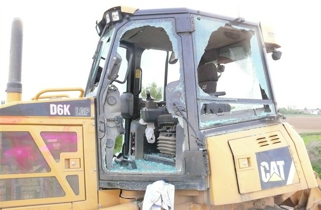 Zeugen informierten die Polizei über den Vorfall, woraufhin ein Streifenwagen die Baustelle der B 56n aufsuchte. Hier sahen die Beamten zwei Personen, die sich an einer Planierraupe aufhielten, wobei die Raupe offensichtlich rundherum beschädigt worden war. Die beiden Angetroffenen kamen der Aufforderung, stehenzubleiben, nicht nach, sondern rannten über das angrenzende Feld davon. Die Polizisten liefen hinterher und konnten die beiden Verdächtigen aufgreifen. Es handelte sich um zwei Jungs aus Düren: einer 13, der andere 15 Jahre alt. Sie erklärten, nicht für den an dem Baustellenfahrzeug feststellbaren Schaden verantwortlich zu sein. Eindeutige Spuren, wie zum Beispiel frische rosa Sprühfarbe sowohl auf dem Fahrzeug als auch in den Haaren des 15-Jährigen, ließen zweifelsohne den Tatverdacht der Sachbeschädigung zu. Auch der Vorwurf des besonders schweren Falls des Diebstahls kam hinzu, denn Gegenstände aus dem Inneren der Planierraupe konnten bei den Jungs aufgefunden werden, ebenso wie Glassplitter, die von den völlig zerstörten Scheiben des Fahrzeugs stammten.