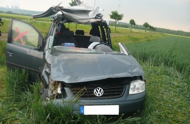 Der Pkw kam auf den Rädern im Feld zum Stillstand. Der 50-Jährige wurde im Fahrzeug eingeklemmt und musste durch die Feuerwehr befreit werden. Aufgrund der Schwere seiner erlittenen Verletzungen transportierte ihn ein Hubschrauber anschließend in ein Klinikum.