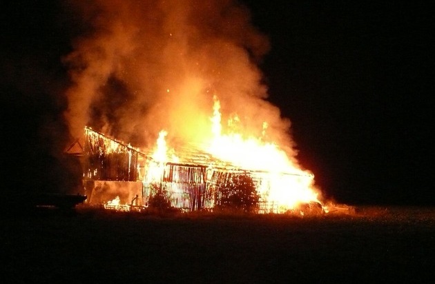 Kurz nach halb zwei meldete ein Anwohner der Viehövener Straße ein Feuer. Bei Eintreffen von Polizei und Feuerwehr brannte die Scheune, die außerhalb der Bebauung auf einem Feld stand, in voller Ausdehnung. In der Scheune befanden sich zum Brandzeitpunkt Heuballen. Die Feuerwehr überwachte das kontrollierte Abbrennen.
