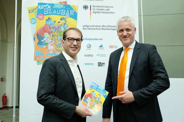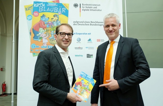 Käpt'n Blaubär und Hein Blöd sind gestern der Einladung ins Bundesministerium für Verkehr und Infrastruktur gefolgt. Gemeinsam mit Verkehrsminister Alexander Dobrindt stellten sie vor Berliner Schulkindern die elfte Ausgabe der "Fantastischen Verkehrsfibel" vor.