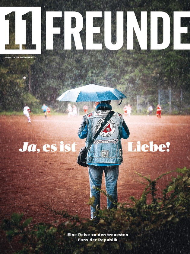 Eine hochkarätige Jury aus Medien- und Kommunikationsexperten des Magazin-Wettbewerbs 'Cover des Monats' (www.cover-des-monats.de) hat den '11Freunde'-Titel 155 zum 'Cover des Jahres' gekürt. Die auf der Titelseite zum Ausdruck gebrachte bedingungslose Liebe des Fans zu seinem Verein in Kombination mit der Headline 'Ja, es ist Liebe' traf exakt den Nerv der Juroren. Das '11Freunde'-Team um Chefredakteur Philipp Köster und Artdirektorin Sabine Kornbrust hat das Cover als Hommage an den Fußball-Fan gestaltet. Köster erklärt dazu: "Wir wollten in unserer Titelgeschichte von der Leidenschaft für den Fußball abseits der großen Stadien berichten. Von Anhängern, die es ganz selbstverständlich finden, ihrer Lieblingsmannschaft in der Verbandsliga oder Kreisklasse hinterherzufahren und sie auf maroden Dorfsportplätzen anzufeuern. Diese Leidensfähigkeit galt es in einem symbolischen Bild einzufangen."