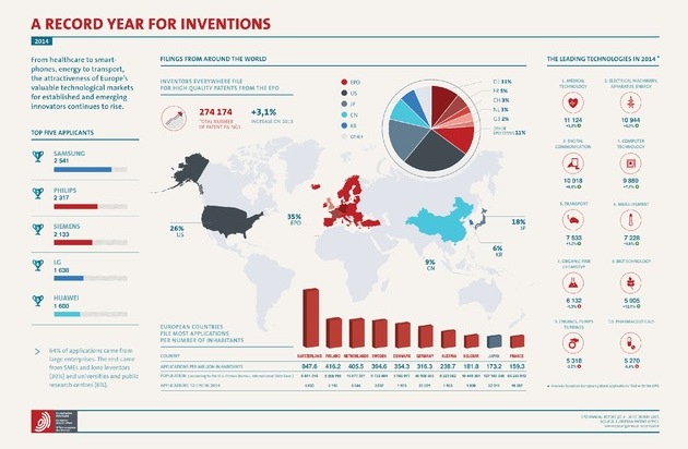 "Die Nachfrage nach Patentschutz in Europa ist nunmehr im fünften Jahr hintereinander gestiegen", sagte EPA-Präsident Benoit Battistelli. "Dies zeigt, dass Europa seine Schlüsselrolle als Technologie- und Innovationsstandort für Unternehmen aus aller Welt weiter festigt. Das wachsende Volumen an Patentanmeldungen aus europäischen Staaten unterstreicht die herausragende Bedeutung patentintensiver Sektoren für die europäische Wirtschaft: Sie stärken Europas Wettbewerbsfähigkeit, seine Wirtschaftskraft und schaffen Arbeitsplätze."