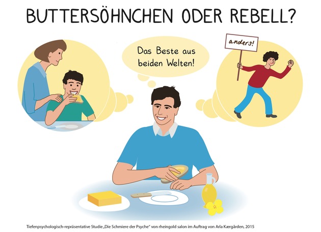 Ob wir Butter oder Margarine mögen, hängt nicht nur von unserem Geschmack, unseren Vorlieben oder ärztlichen Ratgebern ab. Eine prägende Rolle hierbei spielt unsere Mutter. Oder die Großmutter. Unser Verhältnis zu ihnen prägt unbewusst unsere Wahl entscheidend mit. rheingold salon hat im Auftrag von Arla Kærgården® in einer tiefenpsychologisch-repräsentativen Studie herausgefunden, wie die "Schmiere der Psyche" funktioniert - und was es über uns und unsere Bindungen im Leben aussagt, welches Fett wir verwenden.