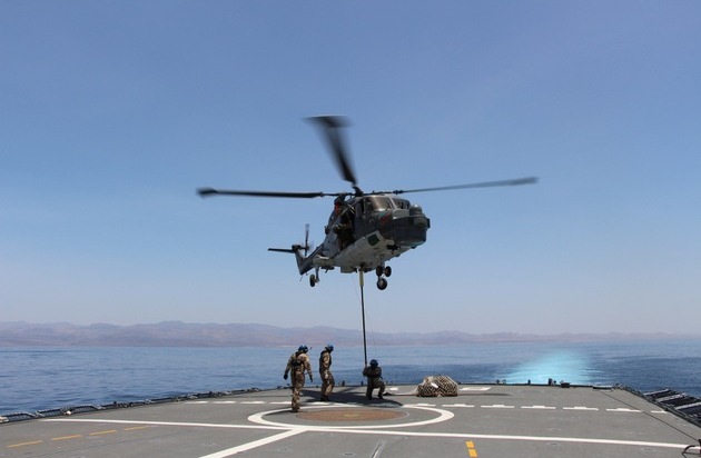Auch das Übersetzen des Boardingteams auf zu überprüfende, verdächtige Boote und Schiffe kann nun wieder sehr viel schneller erfolgen. Dafür sind die "Sea Lynx" eigens mit einer Vorrichtung für das schnelle Abseilen und mit Bordmaschinenkanonen ausgestattet.