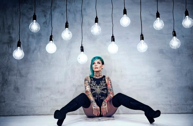 Kaum wiederzuerkennen: Die voll taetowierte Berlinerin Jazzy Gudd (26, Berlin) mit den knalligen, gruen-blauen Haaren ist DER Hingucker bei "The Voice of Germany". Der koerperliche Wandel vom blonden, unscheinbaren Pop-Maedchen zum auffaelligen Punk-Girl begann mit ihrem ersten Tattoo vor acht Jahren. Wie kam es dazu? Jazzy: "Ausschlaggebend war ein Aerzte-Konzert. Etwas spaeter war ich Pop-Saengerin fuer ein kleines Berliner Label und habe gemerkt, dass ich keine Lust mehr auf das 'suesse' Image habe und meine 'wilde' Seite entdeckt, die schon lange in mir schlummerte." Jedes ihrer Tattoos erzaehlt eine Geschichte: Die linke Koerperhaelfte der 26-Jaehrigen steht fuer das Positive im Leben. Die Rechte symbolisiert das Negative. Am Donnerstag, 19. November, 20:15 Uhr, steht Jazzy bei "The Voice of Germany" auf ProSieben mit und gegen Julian Adler (25, Osnabrueck) im Battle-Ring - ihr Song: "Fuehlt Sich Wie Fliegen An" von Max Herre feat. Cro.