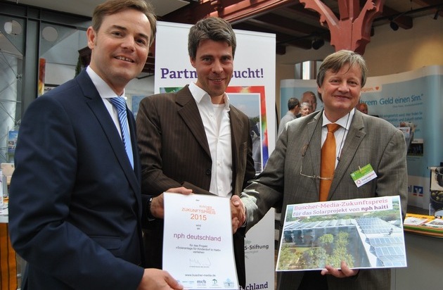 Am 26. April 2015 fand in Bühl der Zukunftsmarkt Mittelbaden statt. Die vom Grünen Forum Baden gegründete Veranstaltung ist im badischen Raum inzwischen zu einer festen Größe geworden. Seit 2012 stellen sich Unternehmen, Handwerker, Stiftungen und Vereine, die sich dem Thema Nachhaltigkeit verbunden fühlen, auf dem Zukunftsmarkt vor. Ein wichtiger Programmpunkt der Veranstaltung ist die Verleihung des Buscher-Media-Zukunftspreises. Die Auszeichnung erhalten Personen oder Organisationen, die durch ihre Projekte den Wandel hin zu einer nachhaltigen Gesellschaft anstreben. In diesem Jahr geht der mit 1000 Euro dotierte Buscher-Media-Zukunftspreis an ein richtungsweisendes Projekt in Haiti. Das Hilfswerk nuestros pequeños hermanos (nph) hat 2013 sein Kinderkrankenhaus in Tabarre, einem Stadtteil von Port-au-Prince, mit Photovoltaik ausgestattet. Inzwischen wurden weitere Gebäude bestückt. Alle Anlagen sollen Anfang 2016 zu einem Solar Smart Grid zusammengeschlossen werden. Der Buscher-Media-Zukunftspreis wurde erstmals 2013 von dem Baden-Badener Medienwissenschaftler und Unternehmer Dr. phil. Marduk Buscher gestiftet. Die Laudation beim Zukunftsmarkt hielt Tobias Wald, Mitglied des Landtags Baden-Württemberg. "Nur jeder vierte Haushalt ist in Haiti an ein Stromnetz angebunden. Öffentliche Einrichtungen werden häufig über eigene Diesel-Generatoren betrieben. Besonders für Krankenhäuser ist dies enorm wichtig, da hier eine 24-Stunden-Versorgung notwendig ist. So eben auch in dem Kinderkrankenhaus St. Damien in Tabarre", sagte Tobias Wald in seiner Rede. Marduk Buscher begründete seine Wahl des diesjährigen Preisträgers: "Das Solarprojekt von nph haiti ist ein wunderbares Vorzeigeprojekt für Nachhaltigkeit. Es zeigt, dass die Länder des Südens von Sonnenenergie profitieren können und durch den Auf- und Ausbau dieser richtungsweisenden Technologie ein neuer Wirtschaftszweig entstehen kann. Denn nph bildet in seiner Berufsschule Solartechniker aus."
