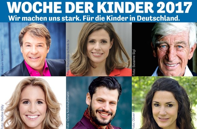 Folgende Prominente sowie Politiker und Politikerinnen unterstützen die 'Woche der Kinder' 2017 (weitere Einsätze sind in Planung):