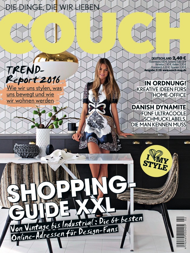 COUCH ist das junge Wohn- und Fashion-Magazin im Pocketformat und füllt die Lücke zwischen klassischen Wohnzeitschriften und jungen Lifestyle-Magazinen. COUCH richtet sich an Frauen zwischen 20 und 39 Jahren und vereint die Themen Living, Fashion und Beauty auf einzigartige Weise. Das Magazin ist auf die Bedürfnisse der trendbewussten, mobilen Generation von jungen Frauen zugeschnitten. Leserinnen, die nicht nur stilvoll und individuell wohnen möchten, sondern auch gut aussehen wollen. Klassische Living-Inhalte wie Wohntrends, Einrichtungs- und Shoppingtipps werden deshalb in COUCH mit aktuellen und hochwertigen Beauty-, Fashion- und Lifestyle-Inhalten kombiniert. Die verkaufte Auflage von COUCH liegt bei 139.144 Exemplaren (IVW III/2015). Der Titel ist zum Copypreis von 2,40 Euro erhältlich.
