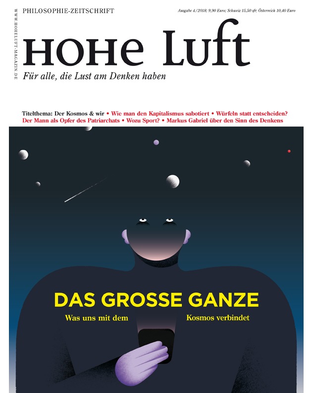 Für alle, die Lust am Denken haben: Das Philosophiemagazin HOHE LUFT betrachtet aktuelle und bewegende Themen aus Gesellschaft & Kultur, Politik & Wirtschaft aus einem philosophischen Blickwinkel und eröffnet dem Leser überraschende Perspektiven auf Grundfragen des Lebens. HOHE LUFT erscheint alle zwei Monate zu einem Copypreis von 9,90 EUR in der HOHE LUFT Verlag UG (haftungsbeschränkt) & Co. KG, die zum Hamburger Verlag INSPIRING NETWORK GmbH & CO. KG gehört.