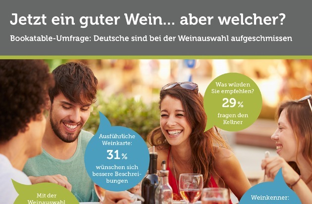 Bookatable-Umfrage: Land der Laien? - Die Mehrheit der Deutschen benötigt Hilfe bei der Weinauswahl im Restaurant