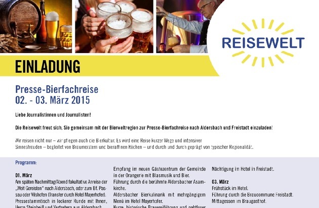 Einladung zur Presse-Bierfachreise vom 1. bis 3. März 2015