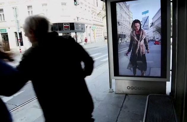 Über "The Walking Dead Scary Shelter": Mit einer noch nie dagewesenen Aktion machten Fox und Sky Österreich die Bewohner Wiens auf den Start der fünften Staffel der Serie "The Walking Dead" aufmerksam. Dazu wurde eine Straßenbahnhaltestelle mit Hilfe einer Video-Installation zwei Tage lang von Zombies heimgesucht.