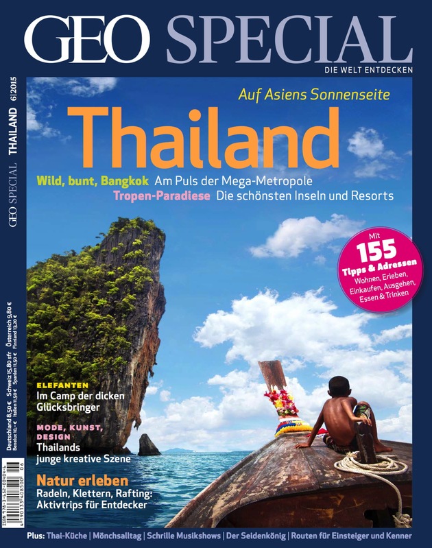 Die Natur üppig, die Strände wie Postkarten,die Menschen sanft - die Faszination für Thailand hält ungebrochen an. GEO Special begibt sich in seiner aktuellen Ausgabe auf die Suche nach dem, was das Tropen-Paradies zur Fantasie gerade in trüben Wintertagen macht, aber auch jenem, was in der Gesellschaft in jüngster Zeit vor sich geht. Von der chaotischen Mega-Metropole Bangkok über atemberaubende Nationalparks bis zu paradiesischen Tropeninseln beleuchtet GEO Special in seiner Dezember-Ausgabe dieses Land der Widersprüche.