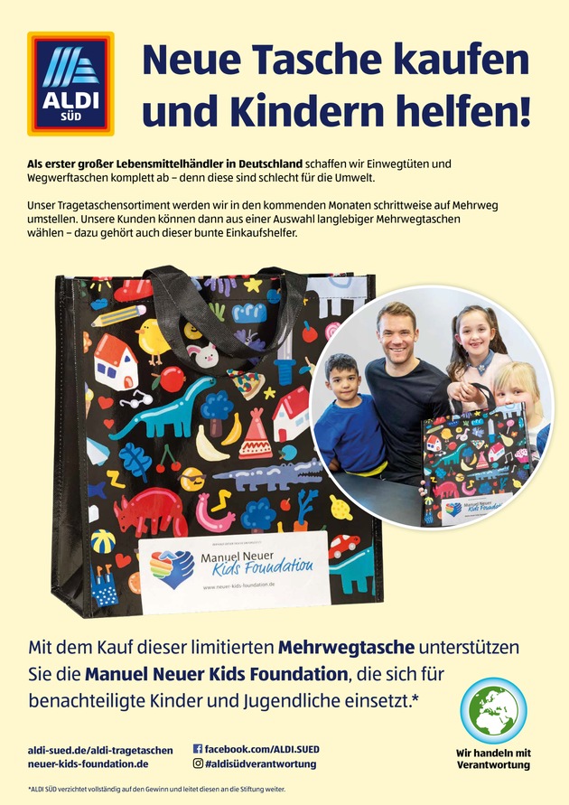 Zweite ALDI SÜD Taschenaktion zur Unterstützung der Manuel Neuer Stiftung