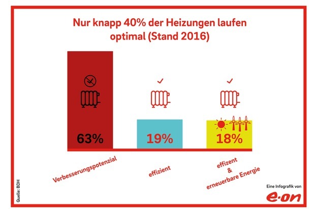 Vielen Verbrauchern in Deutschland ist nicht bewusst, wie hoch die Kosten für Heizung und Warmwasser in ihrem Haushalt sind. Das ergab eine aktuelle YouGov-Umfrage im Auftrag von E.ON. Die Kosten für ein warmes Zuhause und heißes Wasser in Bad und Küche machen - je nach Zustand der Gebäude - rund 70 Prozent der gesamten Energierechnung aus. Das ist aber lediglich nur jedem zehnten Bundesbürger klar. Wahrscheinlich stehen deshalb noch Millionen betagter Heizungsanlagen in deutschen Kellern, die mit mehr als 20 Jahren ein viel zu hohes Alter erreicht haben. Hier geht das Geld millionenfach direkt durch den Kamin, von der CO2-Belastung des Klimas ganz zu schweigen. Dazu passt ein weiteres Ergebnis der Umfrage: Rund 75 Prozent der Befragten unterschätzen, wie viele veraltete Heizungsanlagen in deutschen Haushalten noch ihren Dienst versehen. Von den rund 20 Millionen Heizungen sind neun bis zwölf Millionen mehr als 20 Jahre alt. Darauf hätte laut Umfrage aber nur jeder Vierte der Befragten getippt.