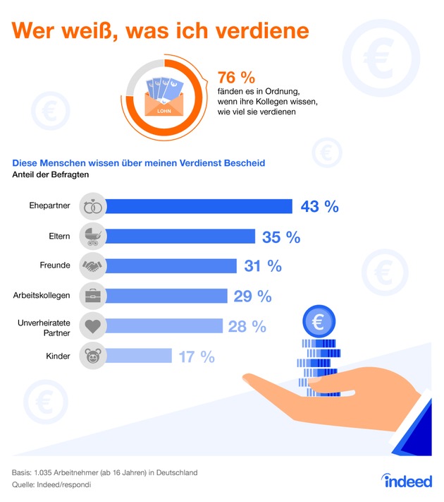 Aktuelle Gehaltsumfrage von Indeed zeigt: Drei Viertel der deutschen Arbeitnehmer einverstanden, dass das eigene Gehalt veröffentlicht wird