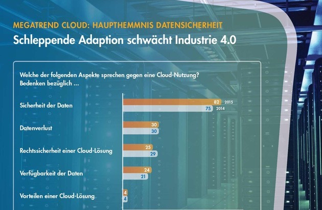 Besonders auffällig ist das wachsende Misstrauen in der Automobilindustrie, die bislang als Cloud-Vorreiter galt. War 2014 noch der Maschinen- und Anlagenbau die Branche mit der größeren Skepsis in puncto Datensicherheit, ist es dieses Jahr die Automobilindustrie. In der aktuellen Umfrage spricht die befürchtete Datenunsicherheit für 94 Prozent der Automotive-Unternehmen gegen die Cloud. Ursache könnte die Angst vor Betriebsspionage sein.