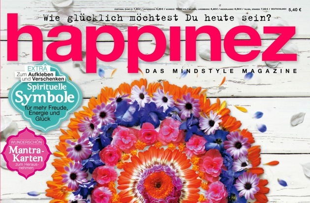 Happinez ist das erste Mindstyle Magazin für anspruchsvolle Frauen, die materiellen Luxus mit innerer Zufriedenheit kombinieren. Im Juni 2010 begründete die Zeitschrift das Segment auf dem deutschen Markt und markiert damit das neue gesellschaftliche Bewusstsein für wahren Luxus: Zeit, Gelassenheit und innere Stärke. Es eröffnet der anspruchsvollen Leserin durch fundierte, informative Beiträge mit Interviews, Reportagen und Kolumnen von populären Autoren einen verständlichen Zugang zu einem breiten Themenspektrum mit den Schwerpunkten Weisheit, Psychologie und Spiritualität. Happinez besticht durch ein einzigartiges Design, eine beeindruckende, großzügige Fotografie sowie eine opulente Bildsprache. Das Mindstyle Magazin erscheint achtmal pro Jahr zu einem Copy-Preis von 5,40 EUR mit einer Auflage von 123.211 Exemplaren (Verkaufte Auflagen nach IVW IV/2015).