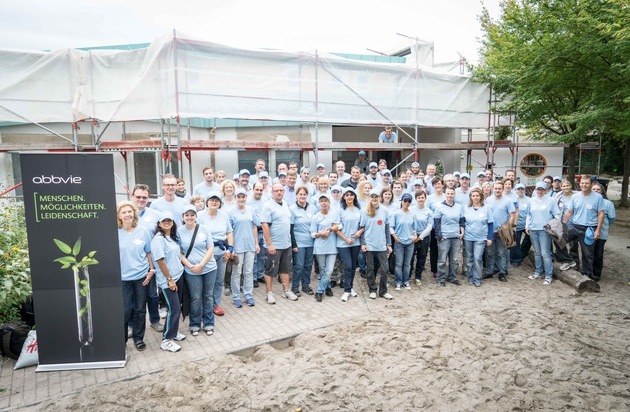 Zum insgesamt siebten Mal engagierte sich das forschende BioPharma-Unternehmen AbbVie Deutschland mit seiner Aktion "Helfende Hände", bei der Kindergärten, Schulen und soziale Einrichtungen in der Region tatkräftig unterstützt werden. Über 150 Mitarbeiter aus den Bereichen Produktion und Forschung und Entwicklung in Ludwigshafen beteiligten sich an der diesjährigen Aktion. Gemeinsam waren sie an zwei Tagen am 15. und 22. September in der Kindertagesstätte Kinderhaus Wolfsgrube im Einsatz.