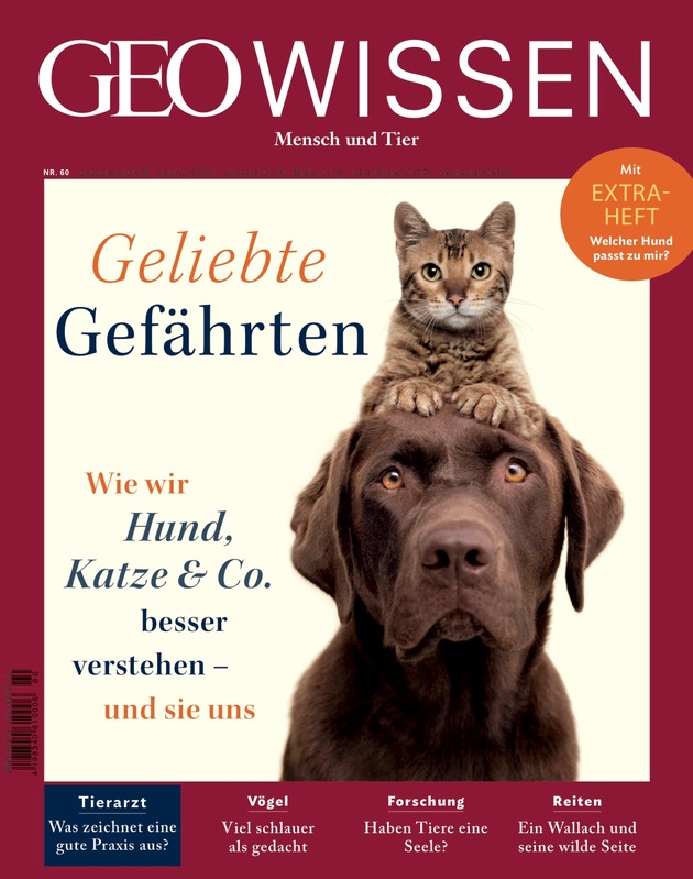 Die neue Ausgabe des Magazins GEO WISSEN widmet sich dem besonderen Verhältnis des Menschen zu seinen Haustieren. Das Magazin enthält zudem ein 40-seitiges Extra-Heft zum Thema "Welcher Hund passt zu mir?".