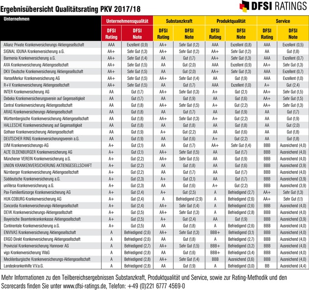 DFSI Qualitätsrating: Die besten Privaten Krankenversicherer 2017