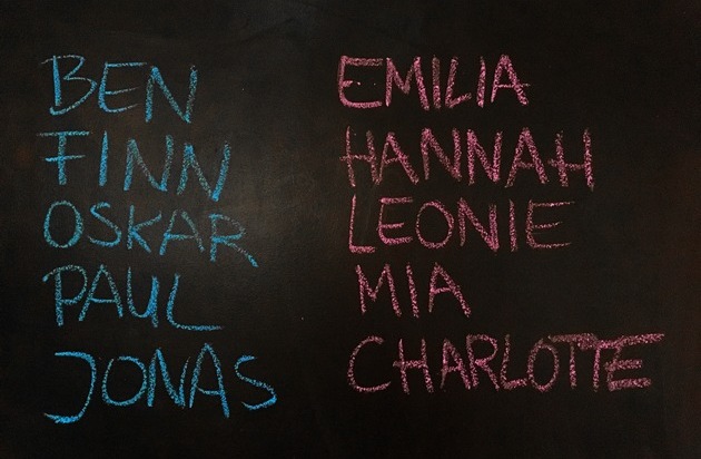 Überdurchschnittlich beliebt im Vergleich zum gesamten Bundesgebiet sind bei den Berlinern die Namen Leonie, Charlotte, Emily, Ella, Johanna, Maja, Finn, Oskar, Luca, Anton, Carl und Alexander.