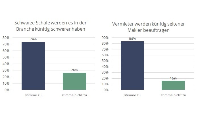 In einem Punkt ist sich die Branche aber einig: 71 Prozent sind der Überzeugung, dass die Bedingungen für Mieter sich durch das neue Gesetz verschlechtern werden. 76 Prozent fürchten, dass Vermieter die Courtage künftig beispielsweise über Abschläge auf Mieter umlegen.