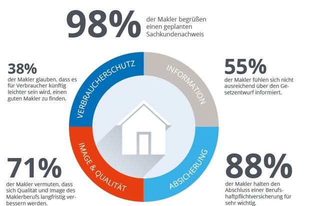 Dass es für Verbraucher künftig leichter sein wird, einen guten Makler zu finden, wäre zwar wünschenswert, aber die Makler sind diesbezüglich uneinig. 38 Prozent glauben "ja, es wird für Verbraucher leichter sein", 39 Prozent glauben es nicht und 23 Prozent sind sich unsicher. Um Verbraucher besser vor unseriösen Maklern zu schützen, wird vielfach der Wunsch nach einer Berufszulassung auf hohem Niveau geäußert: "Die Voraussetzungen sind immer noch viel zu gering. Die Alte-Hasen-Regelung führt dazu, dass die Makler, die einen schlechten Job machen, auch weiterhin einen schlechten Job machen können. Hier helfen nur wesentlich strengere Zulassungen."