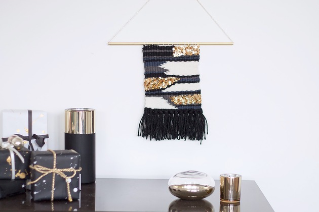 Wenn es draußen klirrend kalt ist, packen wir uns selbst am liebsten ganz kuschelig ein. Aber warum dem Flausche-Trend Grenzen setzen? Das Weben, eine der ältesten Handwerkstechniken der Welt, erlebt gerade eine wahre Renaissance und die eigenen vier Wände werden durch handgewebte Wandteppiche zur wahren Kuschel-Oase - passend zur kalten Jahreszeit. Bloggerin Linda vom Lifestyle-Blog Lindaloves erklärt in ihrer für Etsy verfassten DIY-Anleitung, wie begeisterte Fadenfreunde in wenigen Schritten vom Webrahmen zum Webteppich gelangen ohne sich dabei die Finger zu verknoten. Der Fantasie sind in Sachen Farbe und Material auf dem Weg zum kreativen Wandbehang keine Grenzen gesetzt und Linda zeigt anschaulich, wie aus einzelnen Fäden Reihe für Reihe ein kleines, festliches Kunstwerk entsteht. Dieses kommt mit seinem goldenen Glanz und edlen Blautönen ganz weihnachtlich daher, kann aber je nach Jahreszeit ganz individuell gefertigt werden.