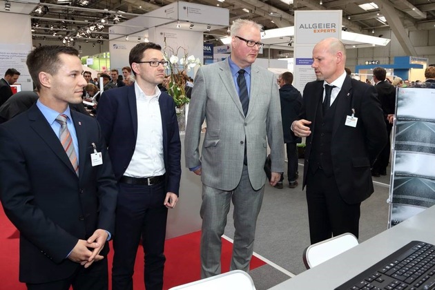 Das Tochterunternehmen der Allgeier Experts der Technologie- und Personaldienstleister Goetzfried AG begrüßte vertreten durch Jörg Spamer, Director Sales und Yannic Hertel, Sales Consultant Hessens Staatsminister der Finanzen Dr. Thomas Schäfer und Michael Hohmann, Zentralabteilungsleiter im Hessischen Finanzministerium auf dem Stand der CeBIT. Das Unternehmen ist bereits zum elften Mal auf der Digital-Business-Messe in Hannover.