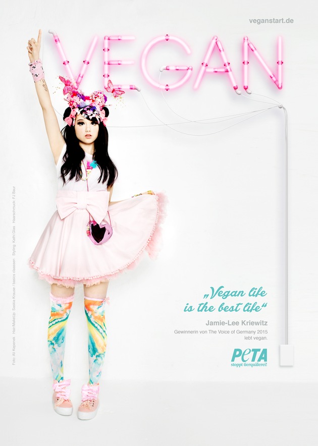 Neues PETA-Motiv: The Voice of Germany-Gewinnerin Jamie-Lee Kriewitz - "Vegan life is the best life"